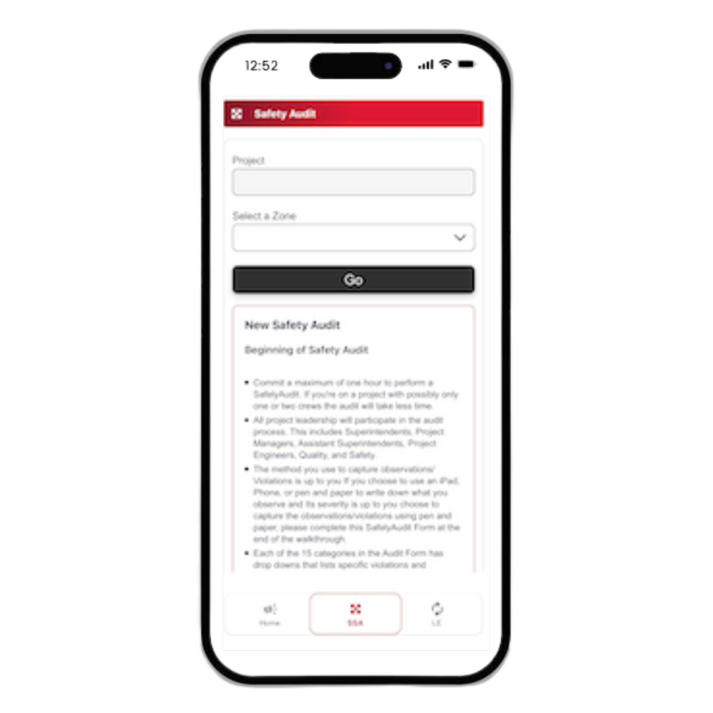 The Safety App is actively used across construction sites to conduct audits, track leadership engagement, and manage commitments—even in low-connectivity environments.