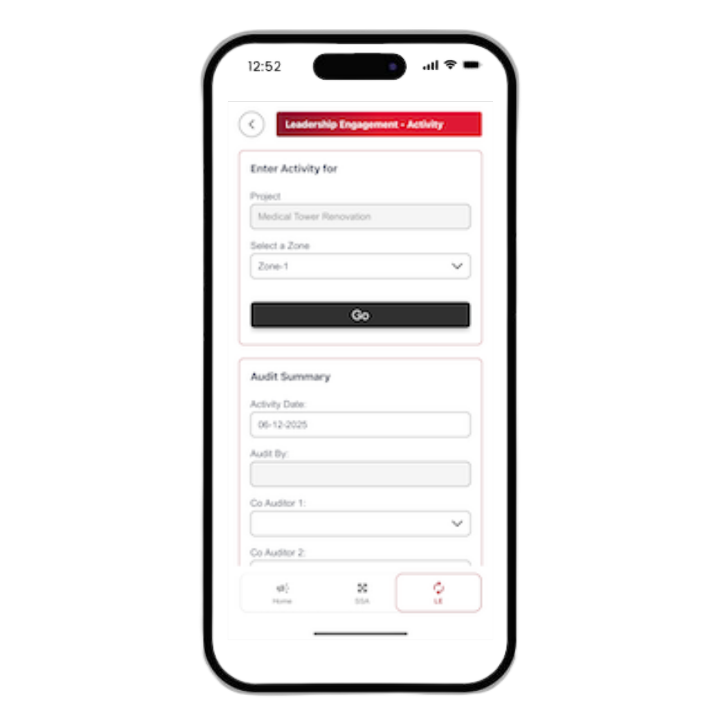 The organization manages safety audits and leadership engagement activities across multiple, geographically distributed construction sites. Existing processes relied on manual inputs and disconnected tools, making it difficult to maintain consistency, accuracy, and real-time visibility into safety performance.